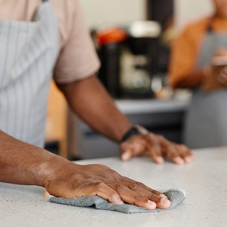 Clean knives, cutting boards, dish towels, and kitchen cloths etc. Clean in and around the kitchen, which is a breeding ground for germs.